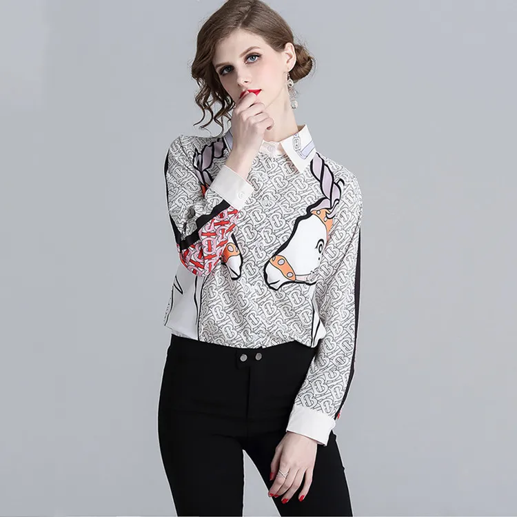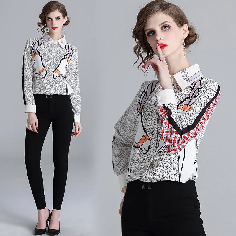 2019 New Style Spring Clothing Western Style Shirt-Style Horse Printed Shirt