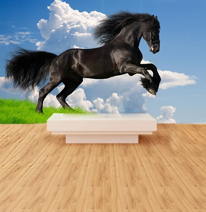 HIGH QUALITY [Self-Adhesive] 3D Black Horse Green Grass Blue Sky 34 Wall Paper mural Wall Print Decal Wall Mural