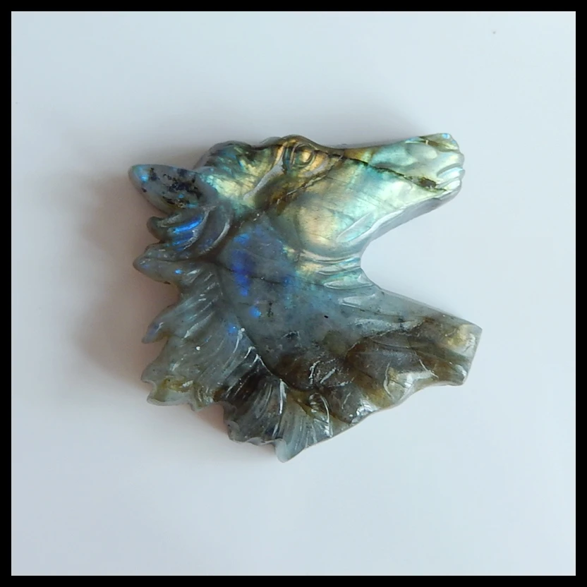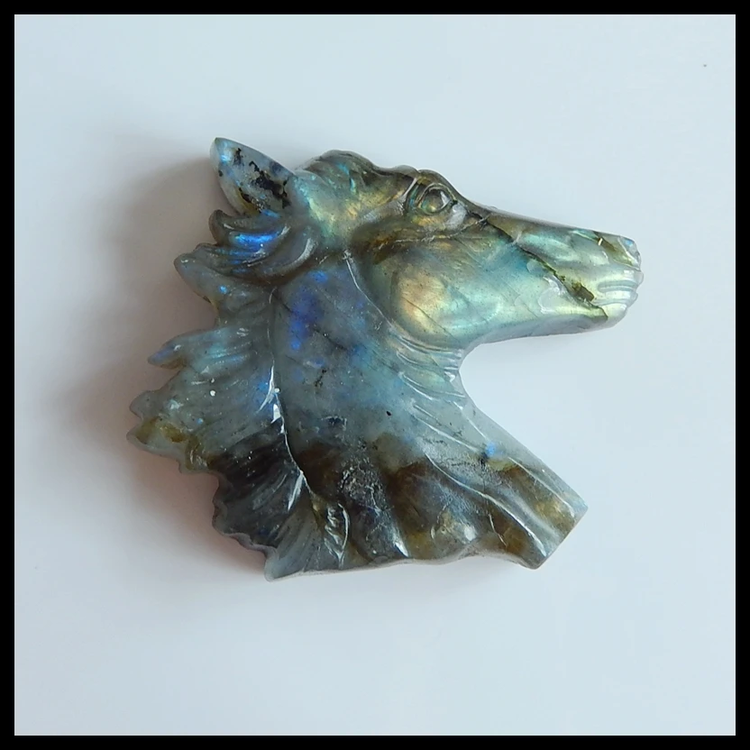 Best Quality Wholesale gemstoneSemiprecious stone jewelryCarved horse head Labradorite Gemstone Pendant Bead43x4
