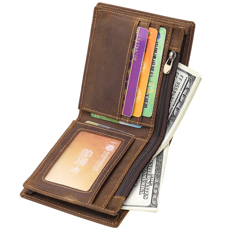 HOT Sale Horse Leather Men's Wallet Genuine Leather Men's Wallet Full-grain Leather Short Wallet Man's Walle